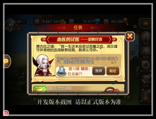 第三环:猩红伯爵参与完成精英关卡:第14张-巨龙巢穴,且亲自打败灵魂守卫,1次。