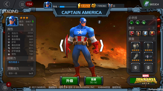 培养超级英雄是本作的一大乐趣所在。首先,每位英雄的类型不同,这不仅体现了其出身,也造成了他们之间相生相克的关系。比如美国队长和蜘蛛侠这种不是被辐射了就是被咬了的被动变异者,用“绿色药瓶”标志来表示(复仇者中这种类型的角色较多);而金刚狼这种主动与艾德曼合金融合寻求进化的,则用“黄色DNA”来表示(X战警这类角色偏多);像钢铁侠这种本体无变化,利用高科技装备武装自己的类型,用“蓝色科技链”来表示;还有像雷神这种本身具备神力的,用“浅蓝色宇宙”标志来表示。当然,游戏中的类型不止这些,如鹰眼就是普通人,但是培养得当依然能够吊打雷神。