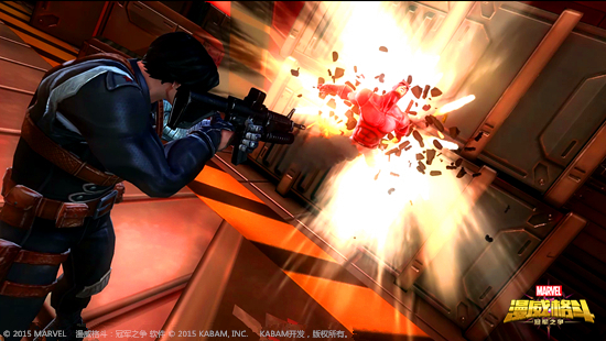 《漫威格斗》最出彩的就是超级英雄们的必杀技演出了。游戏中每位英雄都拥有三段必杀槽,每攒满一段即可使用当前级别对应的必杀技。当英雄的必杀槽变为红色,即可发动威力惊人的三级必杀技,同时会以特写动画的形式来表现。如发动冬兵的三级必杀技后,冬兵先会以一记重拳将对手打飞到撞墙,在对手倒下前跟过去一顿胖揍,然后一个漂亮的后空翻发动子弹时间双枪连射,最后以重机枪扫射加榴弹炮轰杀收尾,整套动作酣畅淋漓,会带给玩家难以抑制的兴奋与震撼。
