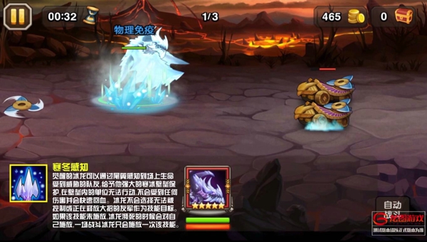 二技能在开场普攻一次后释放,不仅有效保障冰龙的生存,对敌方也可以造成不俗的伤害。