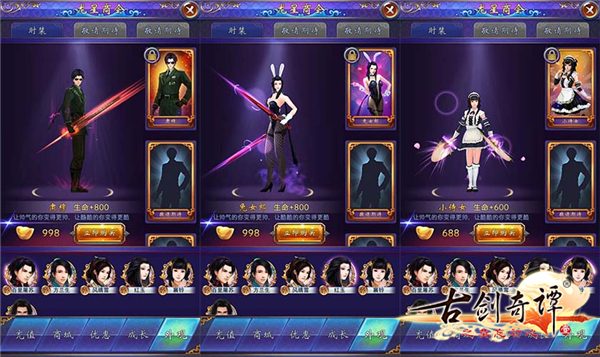 除了全新剧情之外,游戏还设计了多种玩法。三大职业(御风、玄都、巫祝)及战前布阵增强了游戏的策略性;“演武场”让玩家相互PK,设立排行榜,形成强交互;“东海远征”在玩家互动的基础上又增加了战损系统,让玩家一人对多人进行车轮大战;“侠义榜”可以领取多样任务带来多重乐趣;更有“时装系统”多变妆容,为游戏增添欢乐气氛的同时也满足了玩家的收集欲望。还有角色属性、装备、觉醒等多条养成线路,让游戏内容更为丰富。