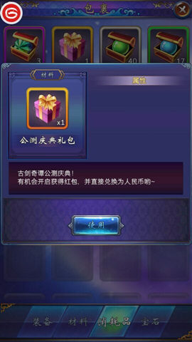 2、打开“包裹”可以看到获得的“公测庆典礼包”,开启“公测庆典礼包”有一定概率获得不同金额档位的红包,单个红包最高888元。