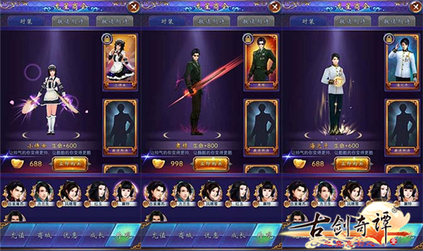 除了原创剧情之外,游戏还加入了多种玩法:“前尘往事”为每个角色定制了专属关卡;“演武场”利用玩家PK和排行榜实现强交互;“东海远征”在交互的基础上添加战损系统,让玩家体验车轮大战的快感;“侠义榜”中设置了各种形式的任务,完成方式不同乐趣多多;时装系统更加闪亮多变,女仆装、军装、兔女郎装等服装不但为游戏增加了欢乐气息,也满足了玩家的收集欲望。